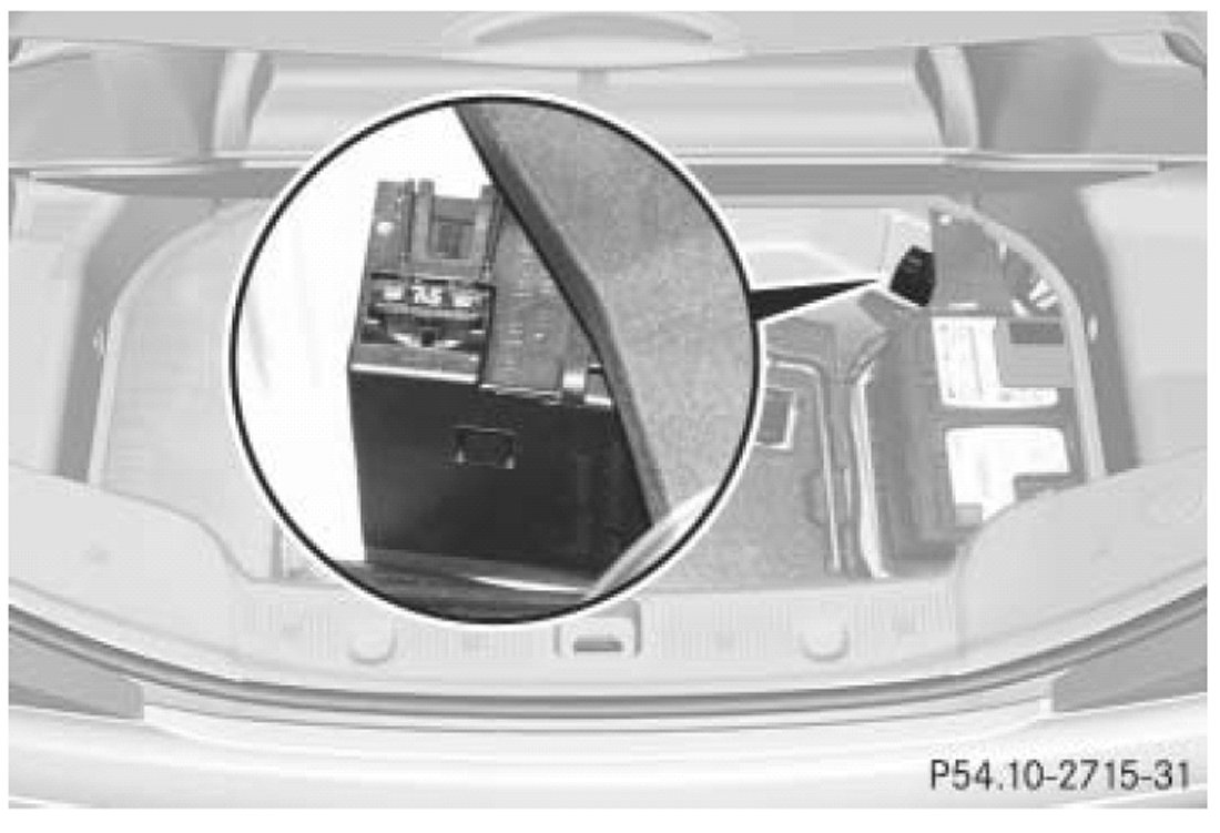 The fuse box in the trunk is located on the right-hand side of the trunk. Underneath the trunk floor cover.