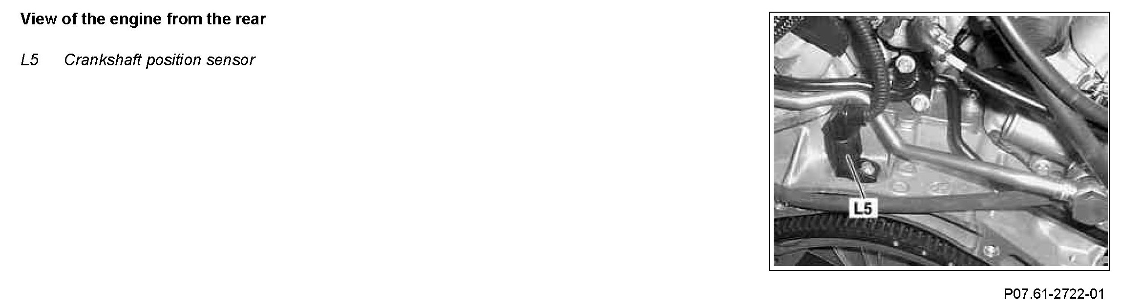 The crankshaft position sensor is located at the top rear of the cylinder crankcase.