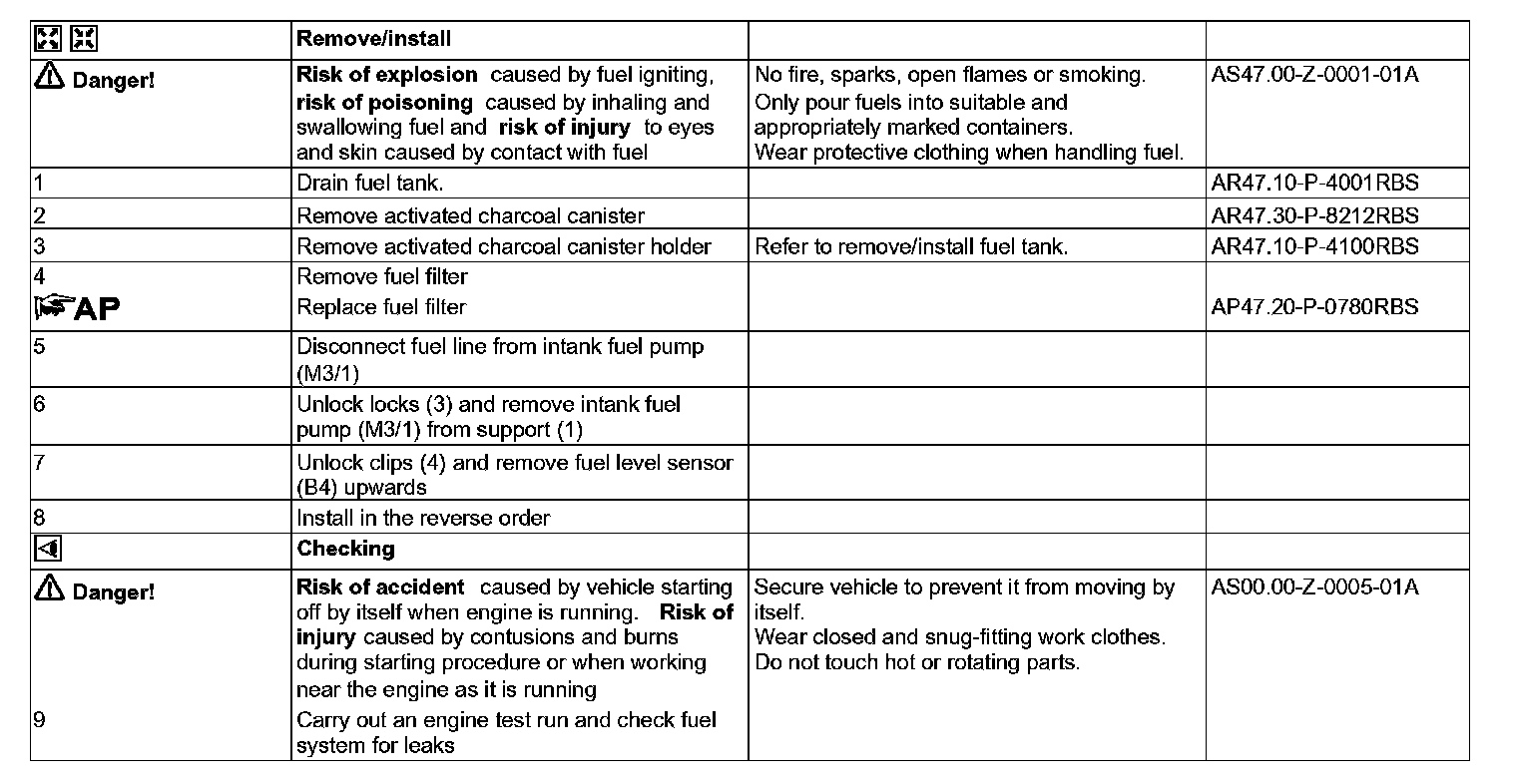 AR47.20-P-7000RBS Remove/Install Fuel Pump and Fuel Level Sensor
