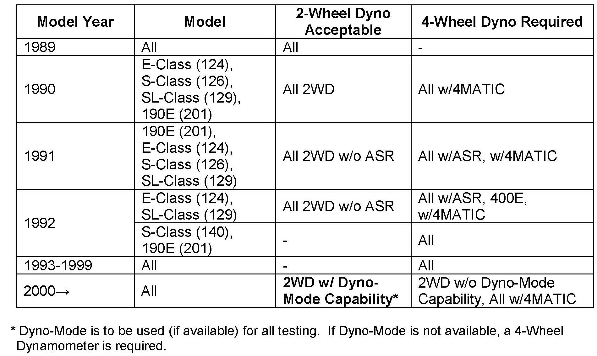 ^ Mercedes-Benz vehicles that are 2WD and do not have "Dyno-Mode" capability