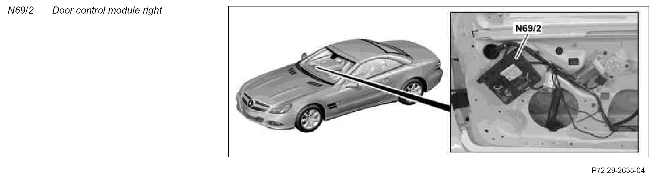 The right door control unit supplies the connected controls with power from circuit 58d.