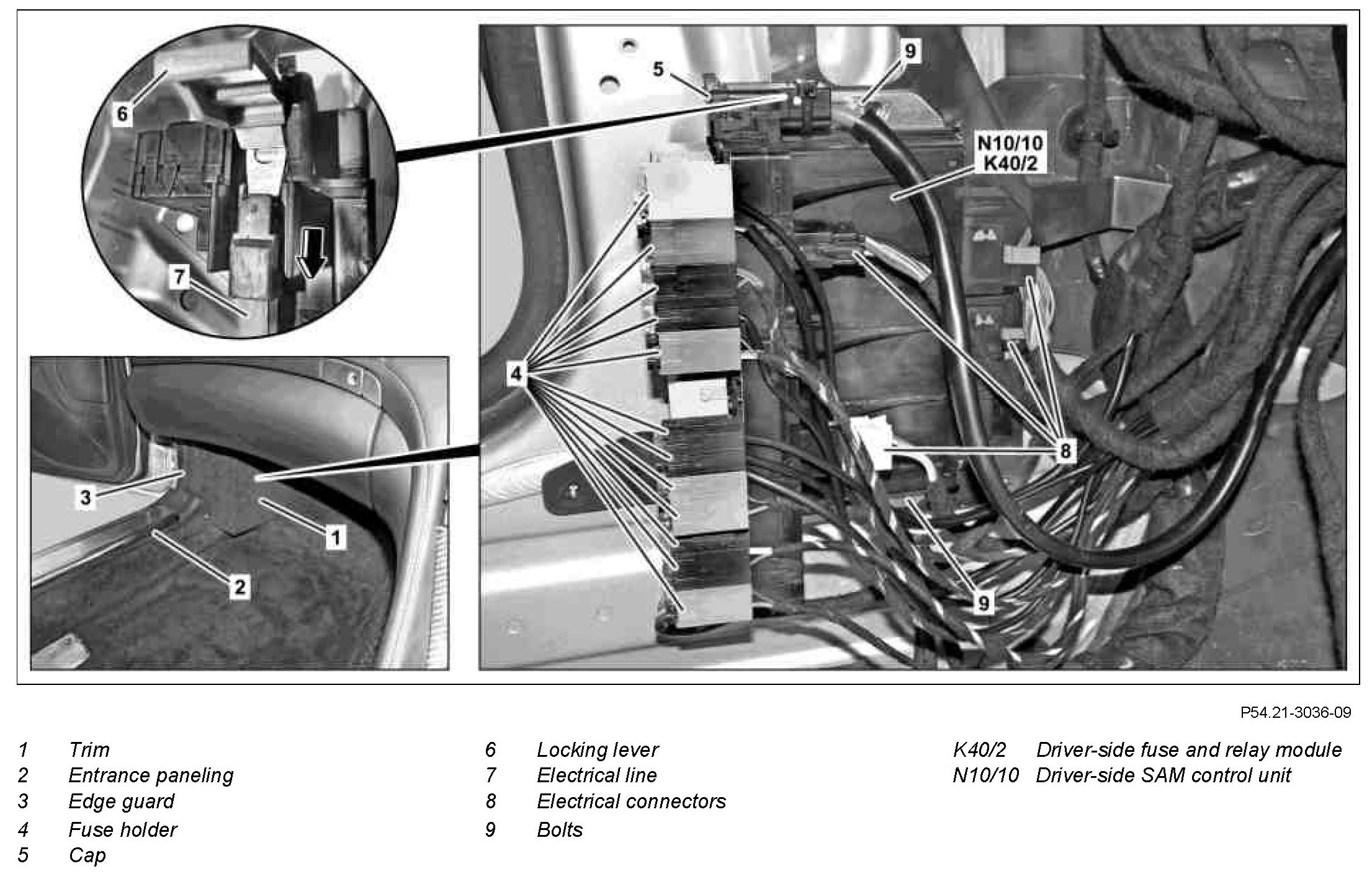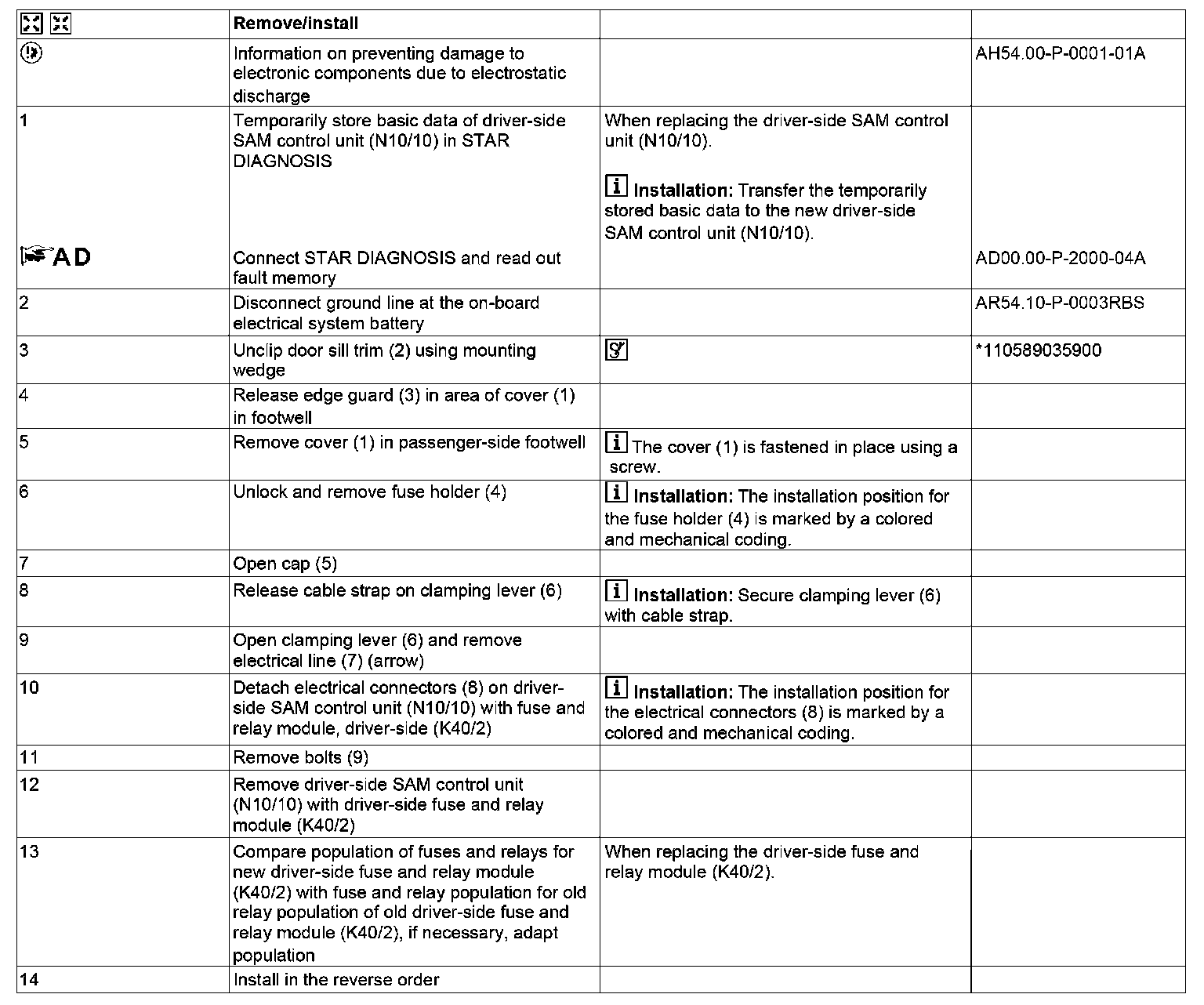 AR54.21-P-1253RBS Remove/install SAM Control Unit With Fuse And Relay Box In Interior On Passenger-side
