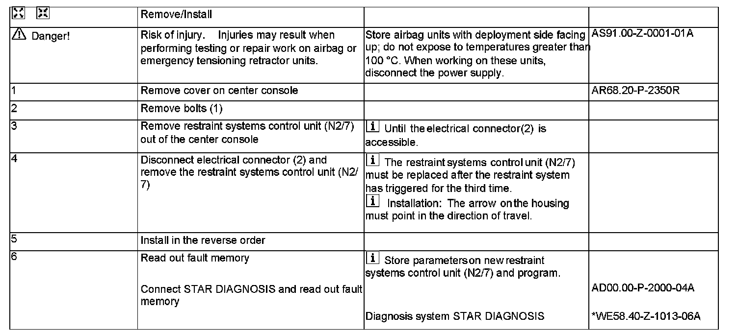 AR91.60-P-0623R Remove/Install Airbag, Sidebag and Belt Tensioner Control Unit