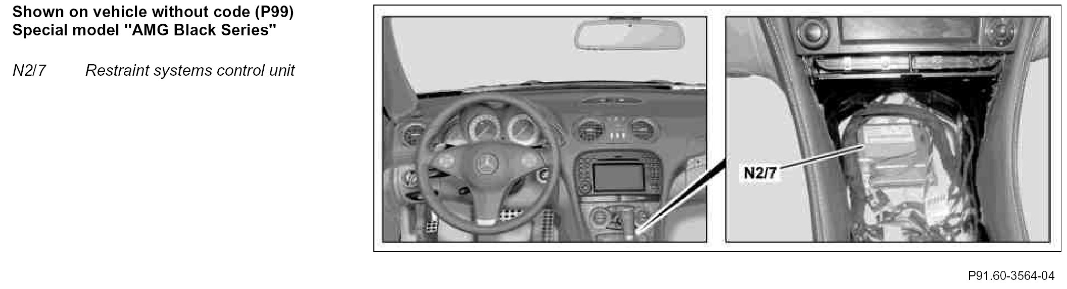 - Right sidebag sensor (A54) (not with code (P99) Special model "AMG Black Series" without code (494) USA version)