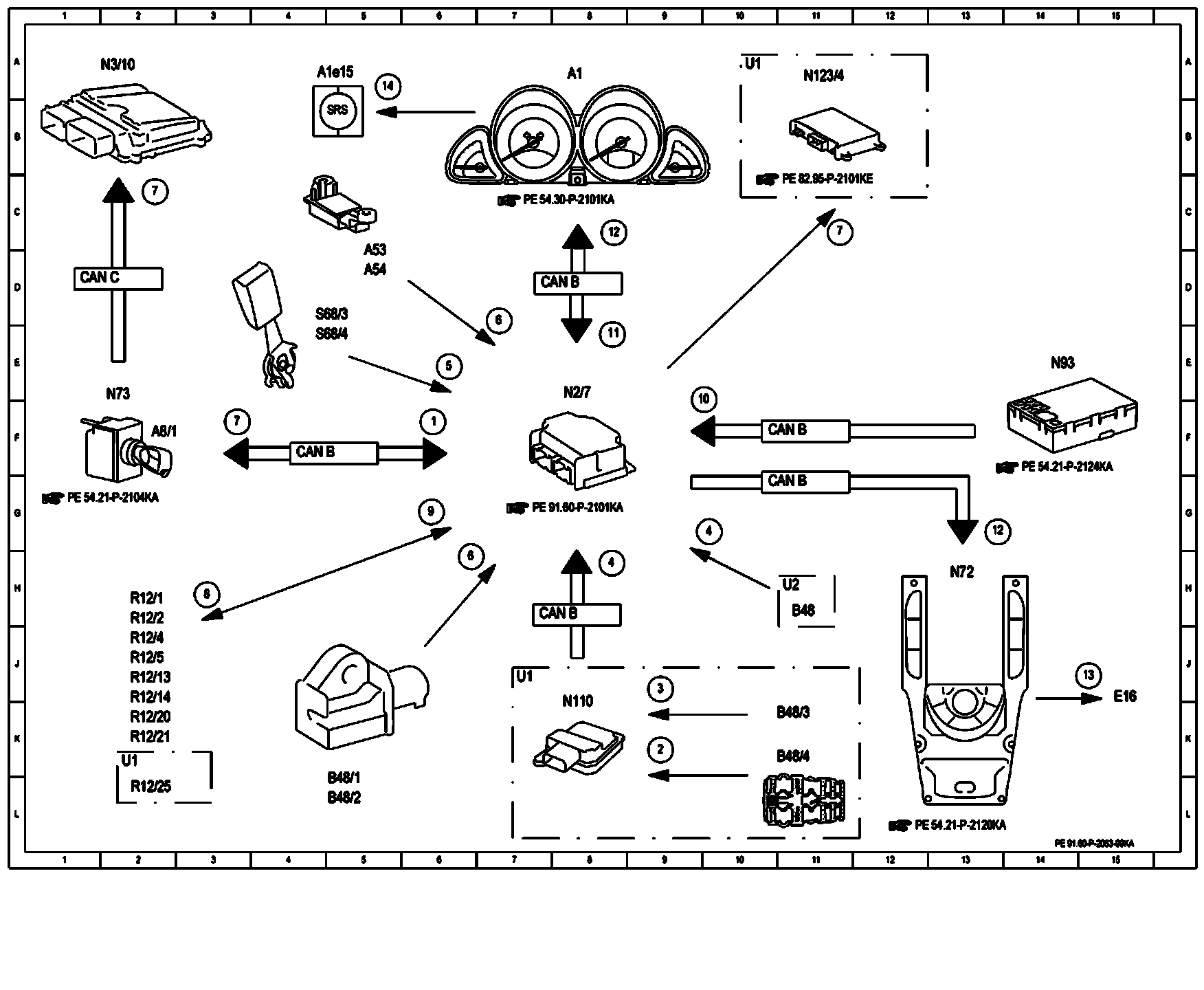 PE91.60-P-2053KA Electrical Function Schematic For Deployment of Supplemental Restraint System (SRS)
