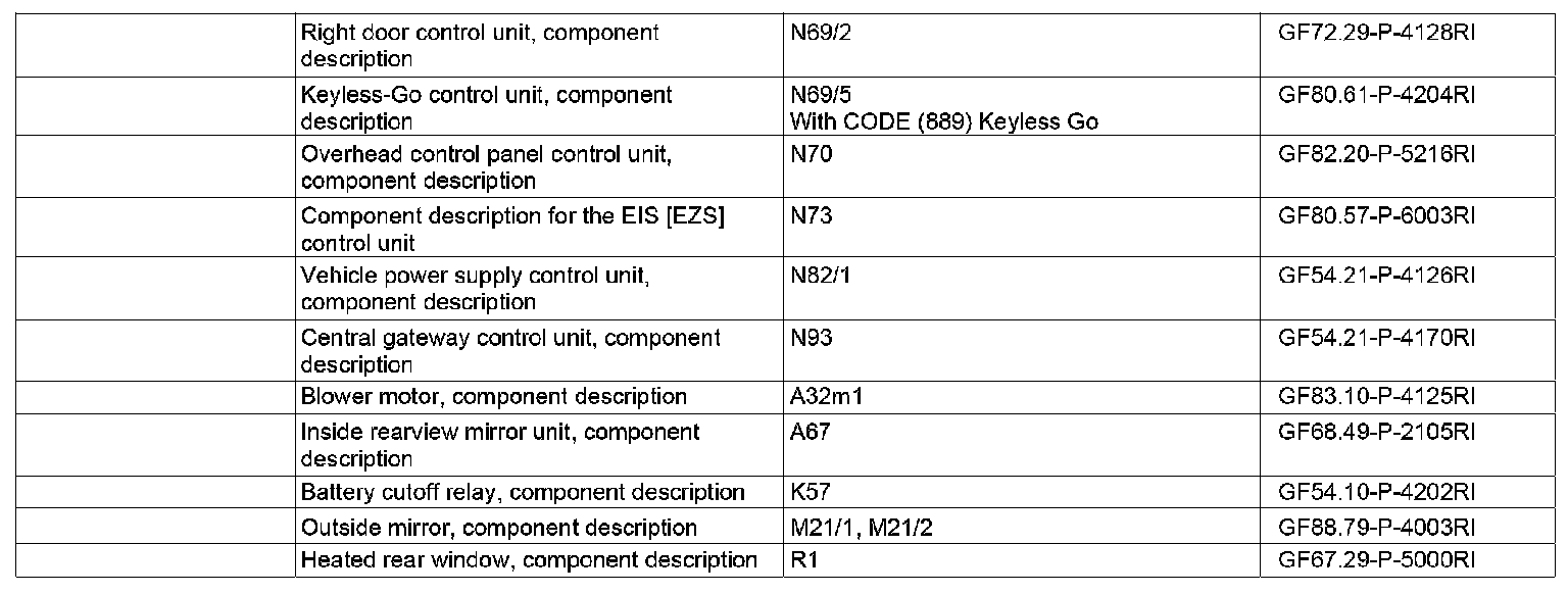 - KEYLESS-GO control unit (N69/5) (with code (889) Keyless Go)