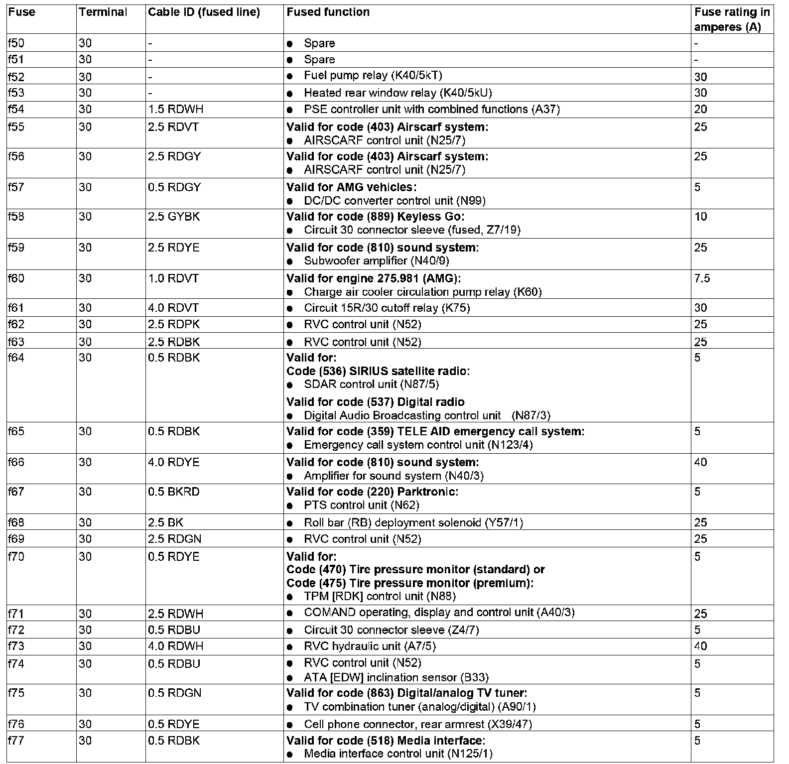 GF54.15-P-1256-01RI Fuse Assignment of Rear Fuse and Relay Box