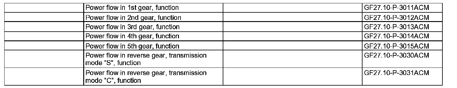 When the torque converter lockup clutch is engaged, power is transmitted via this mechanical connection. Via the gearwheels of the individual planetary gear sets the torques going out from the torque converter, depending on the gear ratio and shift elements actuated are passed on to the transmission output shaft using multi-disk clutches, multi-disk brakes and overrunning clutches.