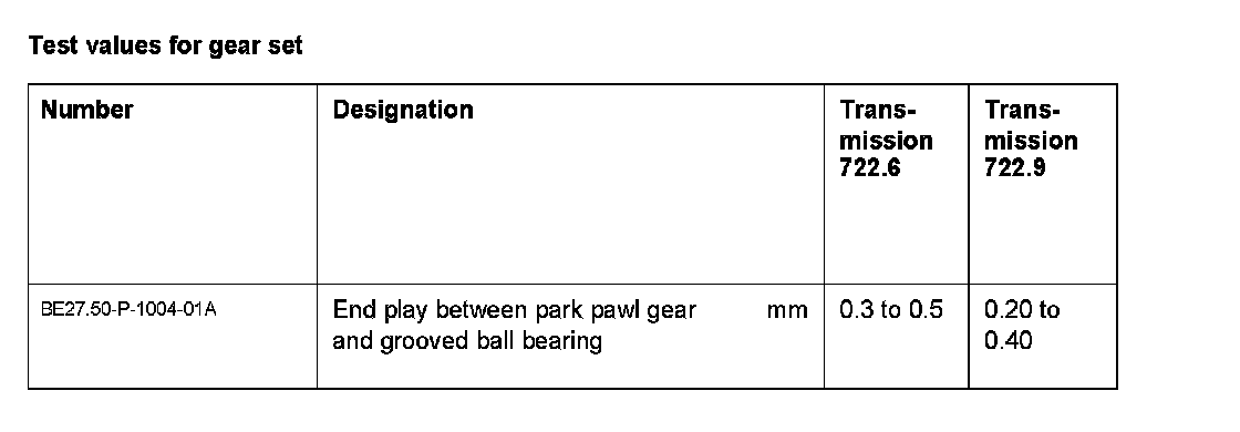 1 Place parallel support (029) on the transmission housing and measure with the depth gauge from the parallel support (029) to the park pawl gear (15).