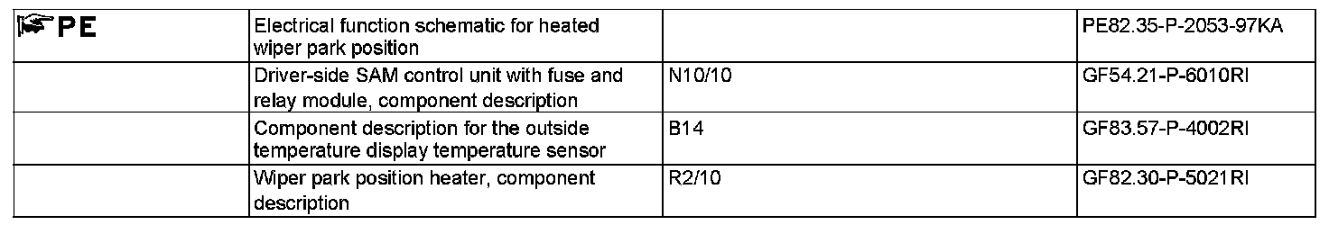 At an outside temperature of T < 6 °C, the wiper park position heater (R2/10) is switched on by the driver SAM control unit.