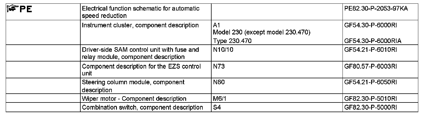 If the driver SAM control unit (N10/10) detects a speed reduction of v > 8 km/h to a speed v < 5 km/h, then the driver SAM control unit switches the wiper motor (M6/1) down by a stage.