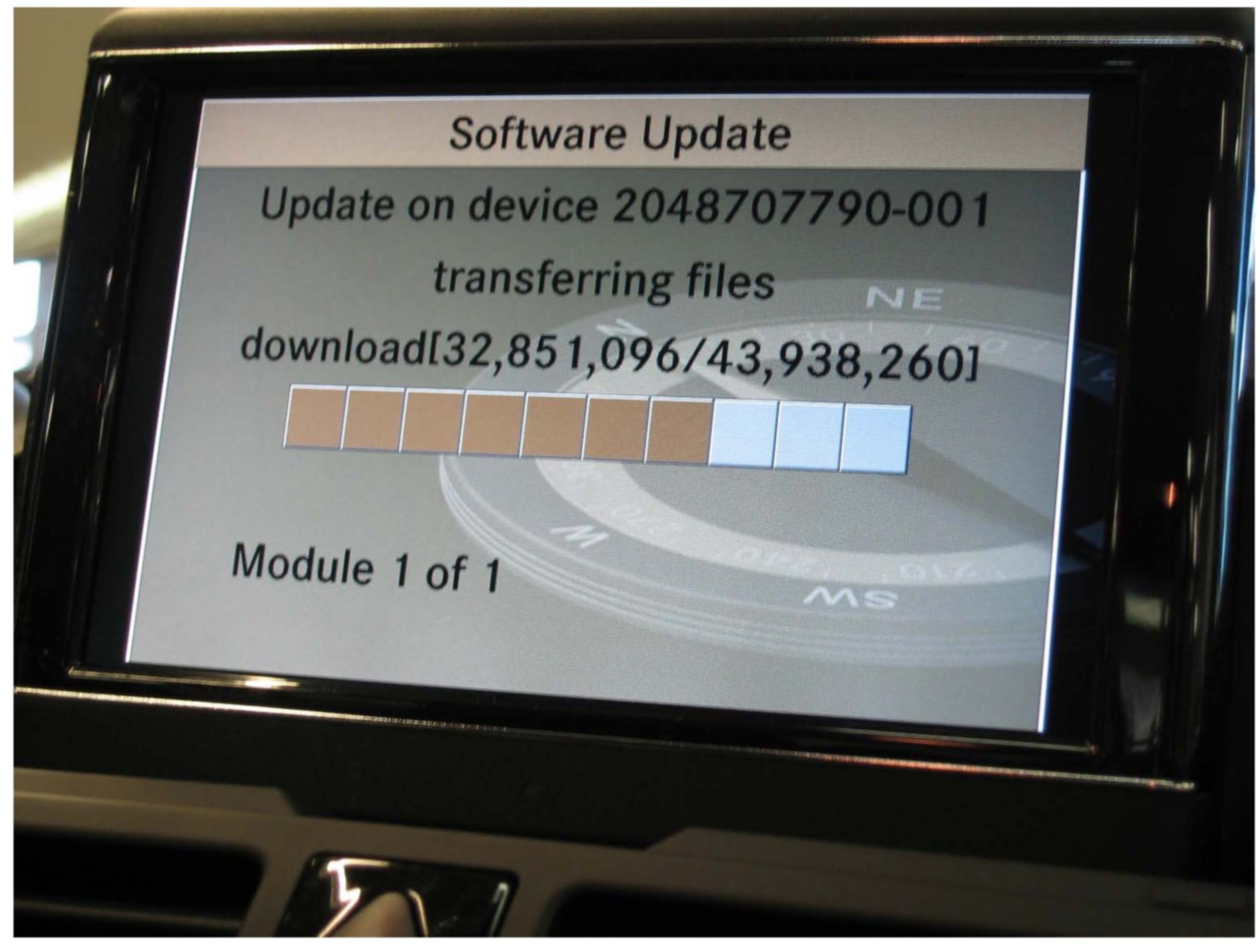 4. Follow the DAS prompts ... insert the SD Telematics CD into the Head Unit slot 1 of the changer and wait until the CD is recognized the update process will start automatically Do NOT Turn Head Unit OFF during the update process (See figure 1 showing what the COMAND screen looks like during the normal update process)