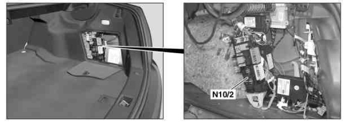 The rear SAM control unit is located in the rear right of the luggage compartment.
