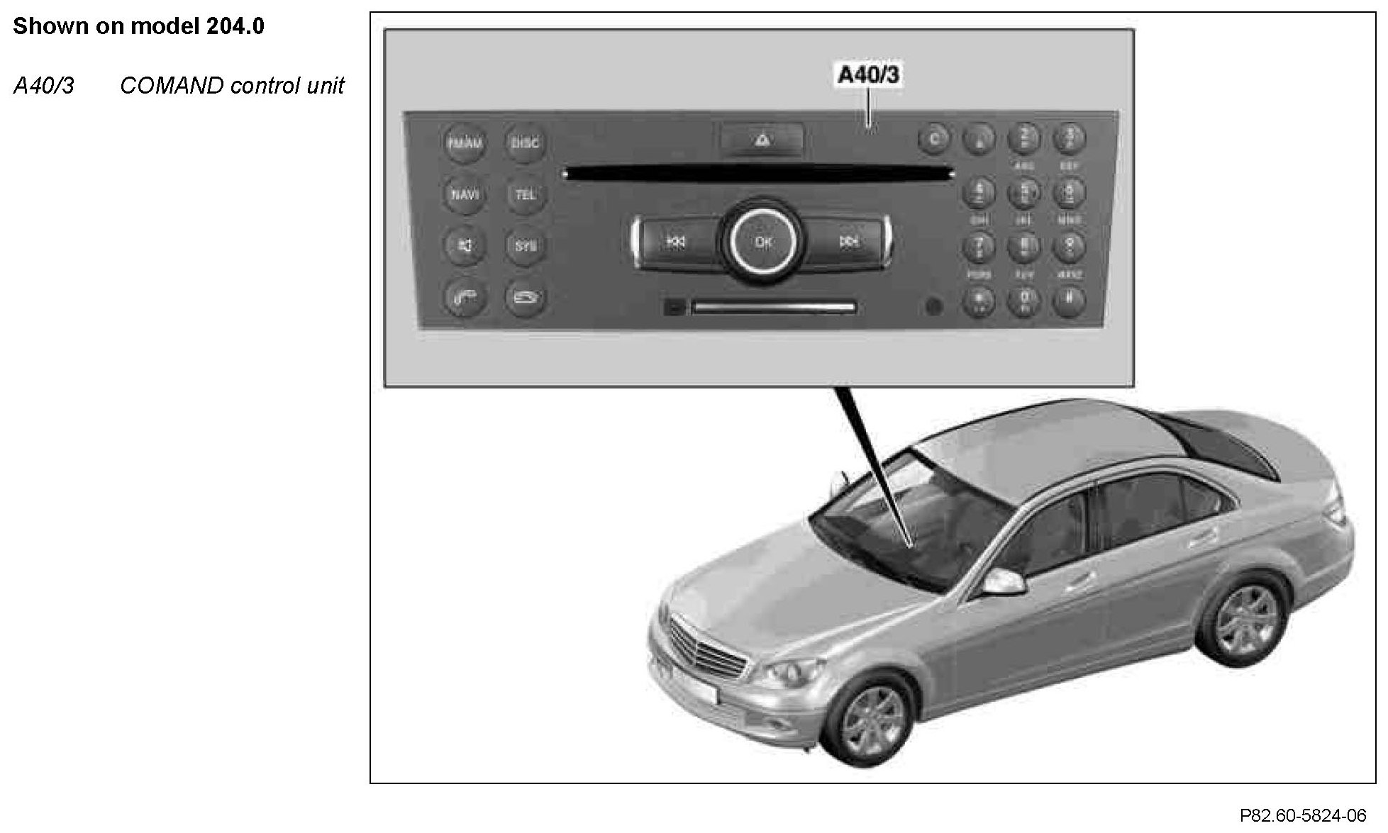 The COMAND controller unit is an interior CAN (CAN B) subscriber. It communicates with the instrument cluster (A1) and the electronic ignition lock control unit (N73), for example. The COMAND controller unit is a telematics CAN (CAN A) subscriber. It communicates with the Audio/COMAND display (A40/8) and the Audio/COMAND control panel (A40/9), for example.