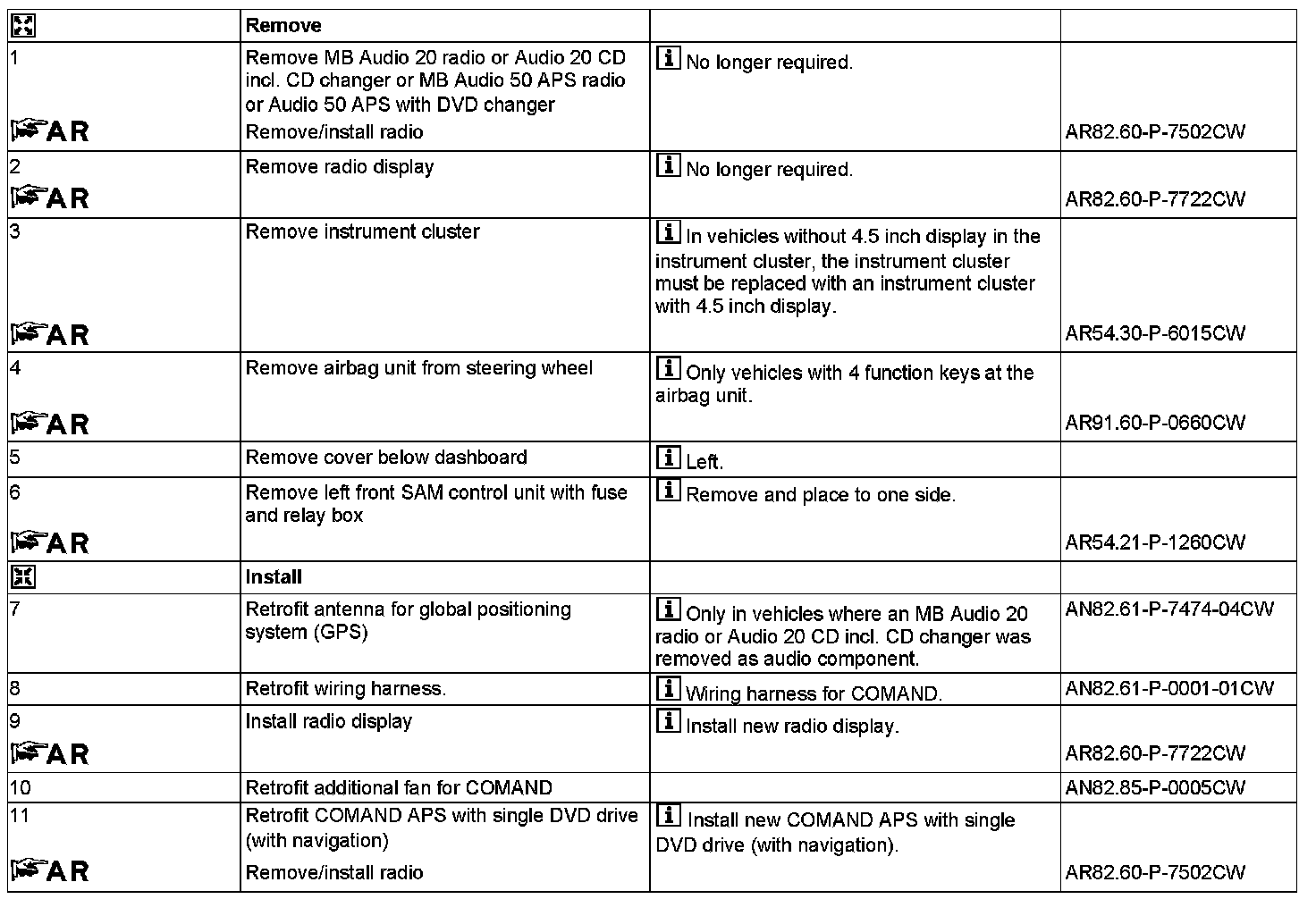 - except CODE (512) COMAND APS with DVD changer