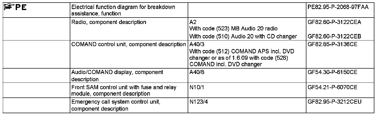 (with code (523) Radio MB Audio 20 or code (510) Audio 20 incl. CD changer)