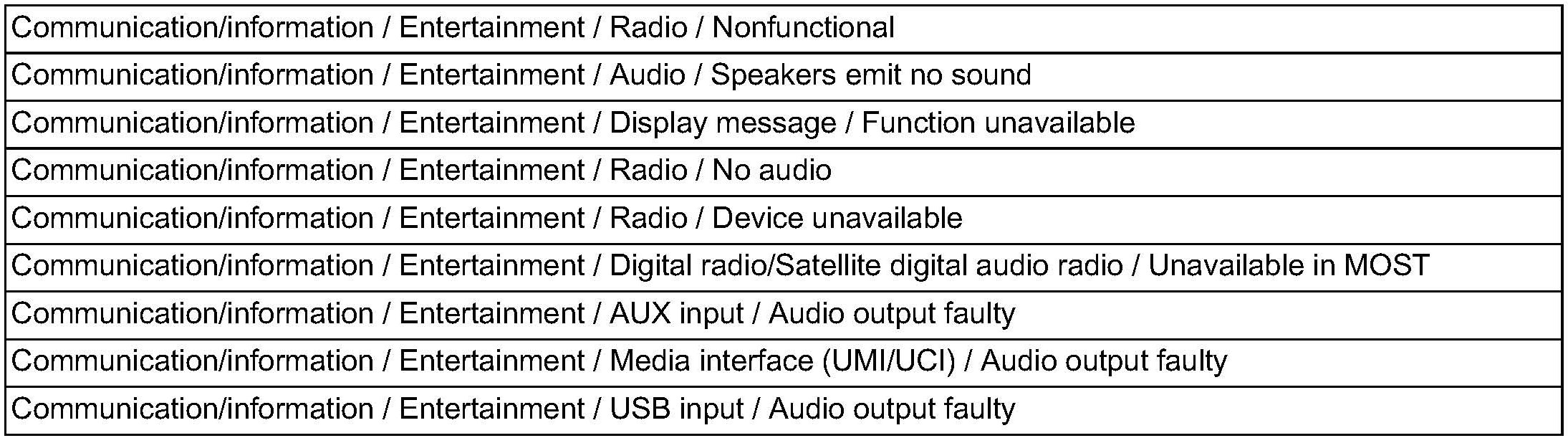 Intermittently no audio output, regardless of the selected audio source. When the "Sirius" satellite radio is selected, the message "Device Unavailable" appears in the central display.