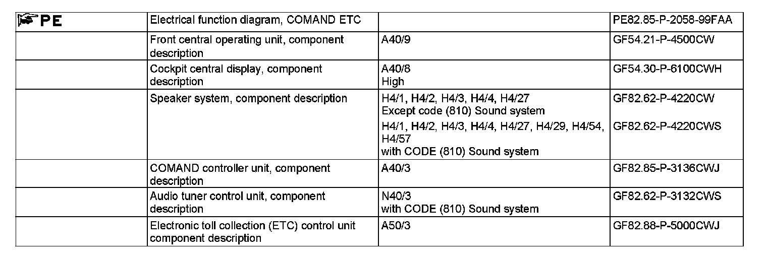 To transmit and receive the data, the Electronic Toll Collection (ETC) antenna (A2/94) and the Electronic Toll Collection control unit (A50/3) are installed in the vehicle. The ETC control unit communicates via the ETC antenna with the toll cashier's section. For automatic payment, a special ETC card must be inserted into the ETC control unit. All information concerning the user and the fees that have already been paid are stored on this card. On the vehicle side, the ETC control unit is connected to the COMAND controller unit via an RS 232C interface. The ETC also has voice output and visual output (pop-ups).