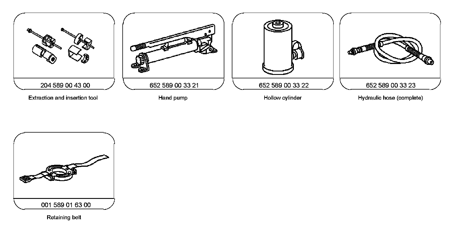 The following tools from the removal and installation tool are required for removing the rubber mounts (2).