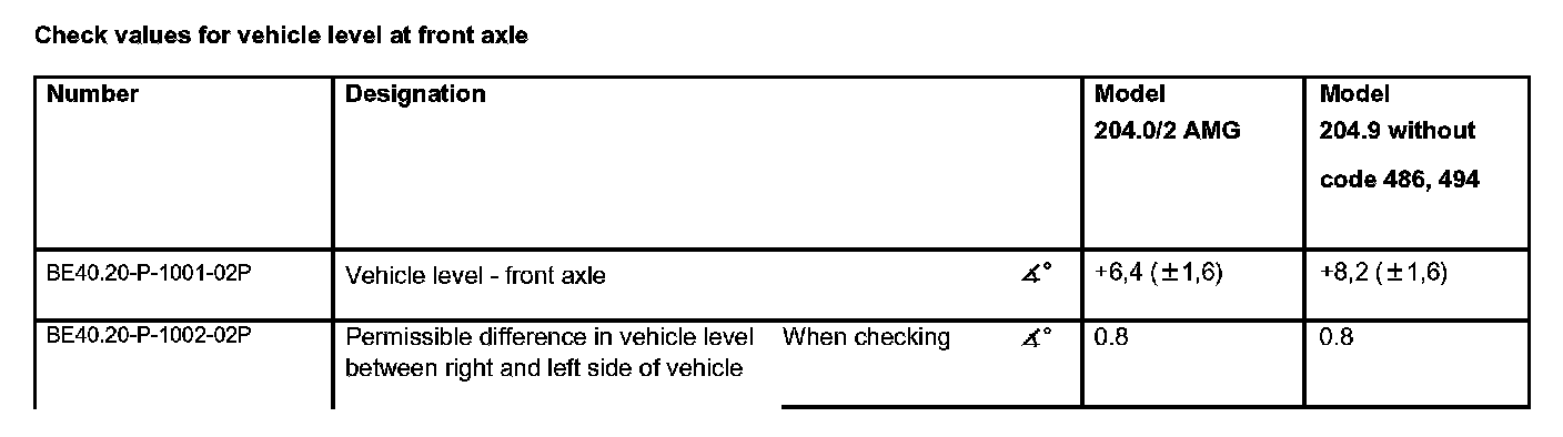 Check values for vehicle level at front axle: