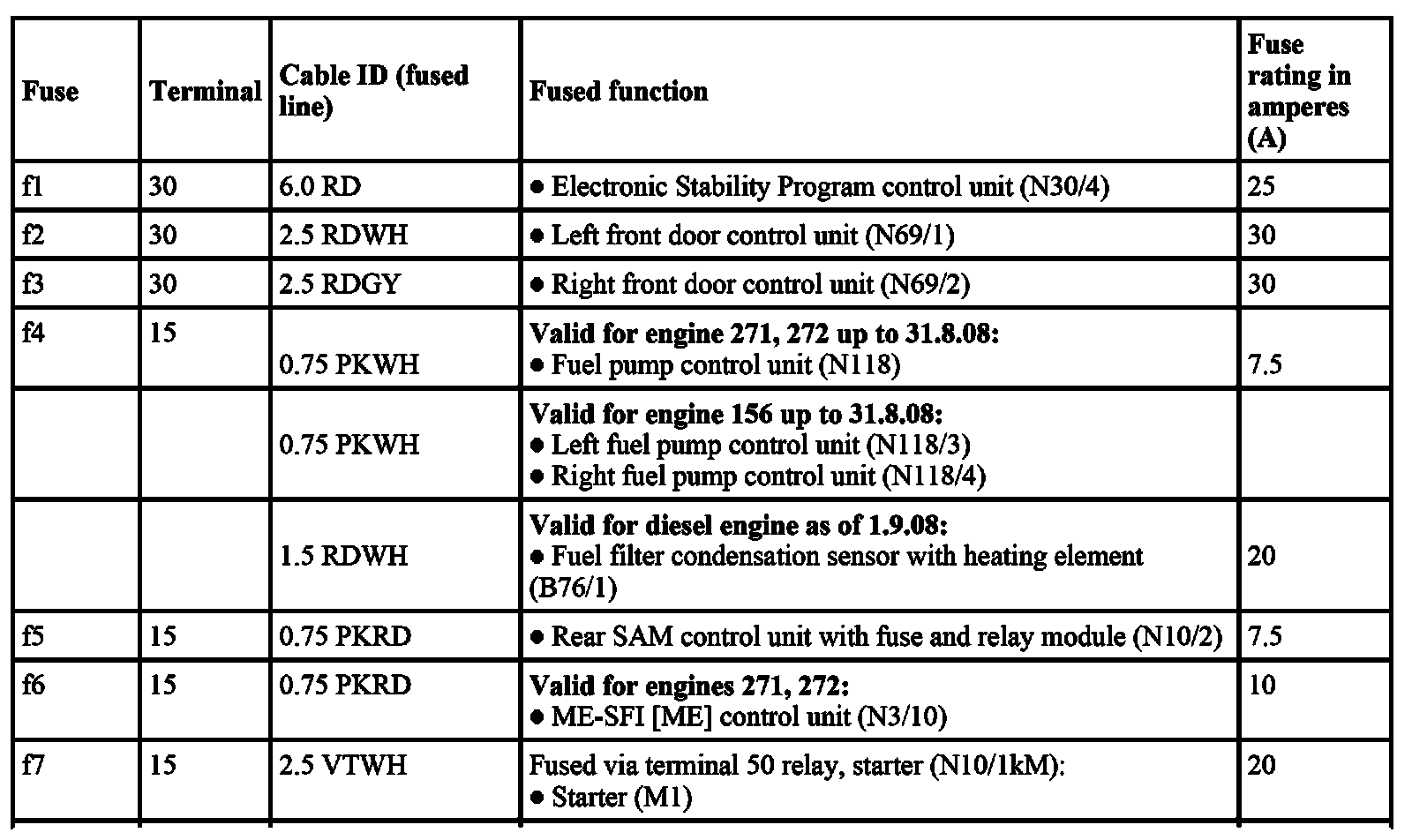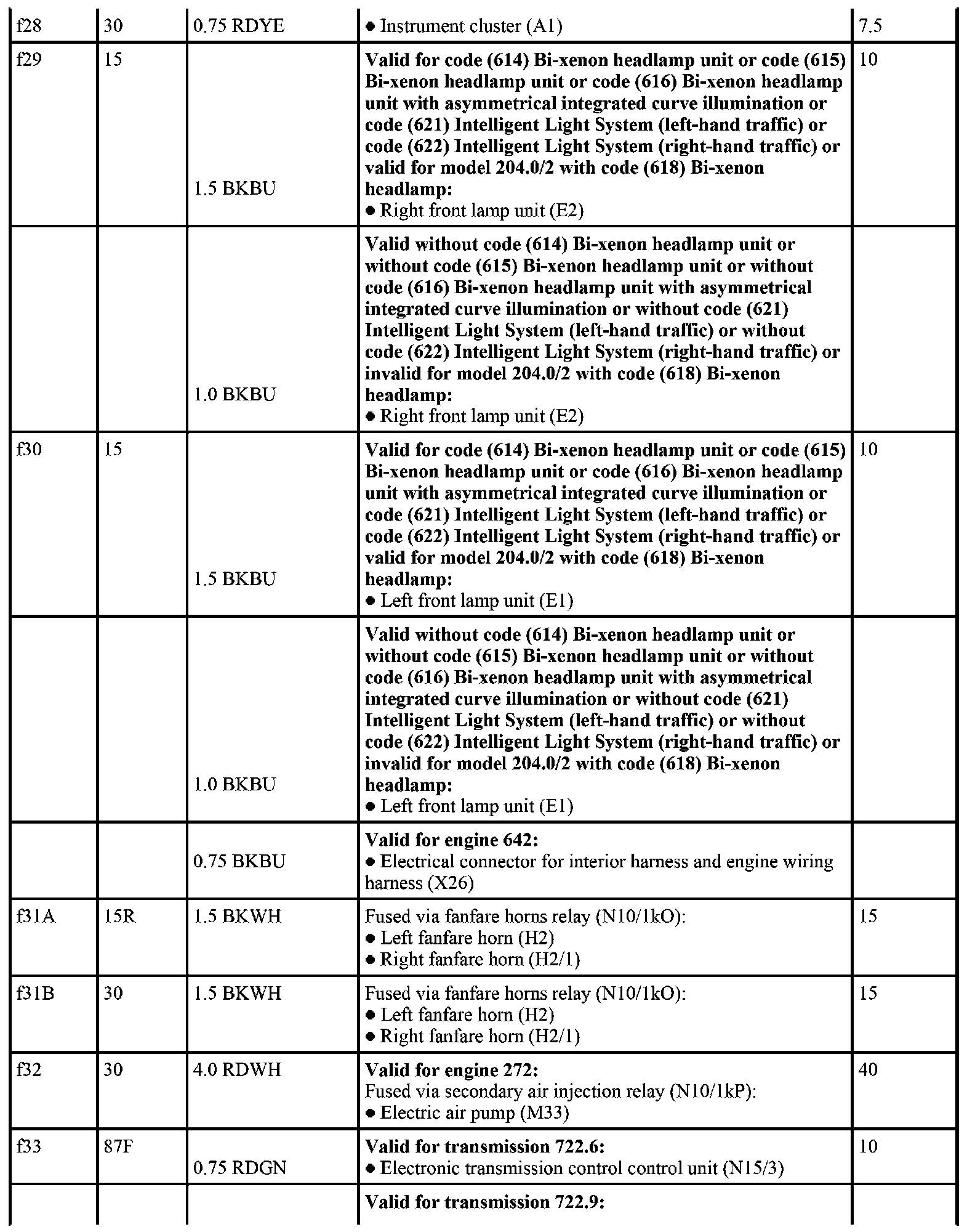 GF54.15-P-1256-03CE Fuse Assignment of Fuse and Relay Box In Left Engine Compartment