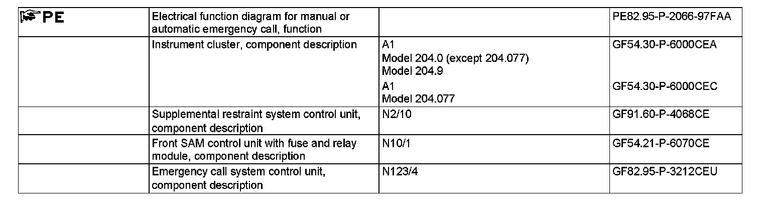^ Communication between the emergency call system control unit and the supplemental restraint system control unit (N2/10) are operating error-free