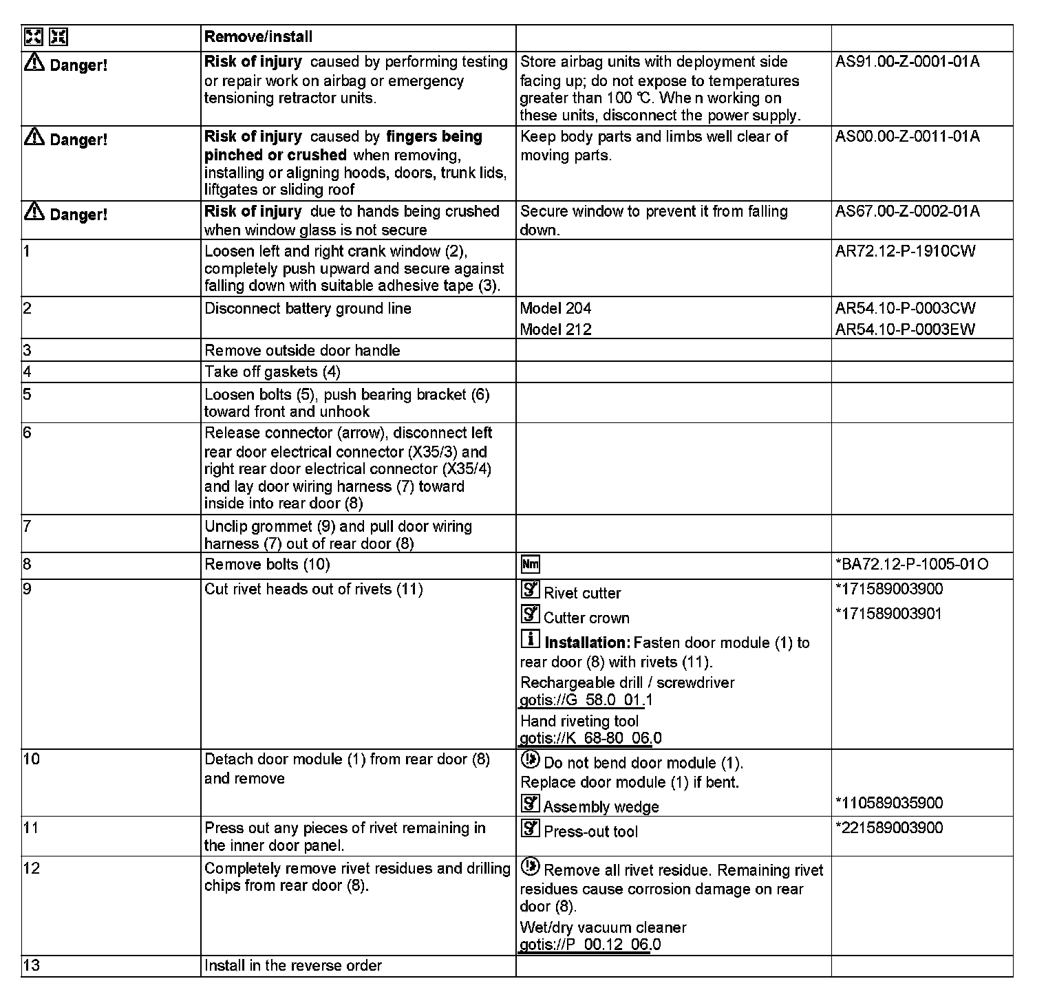 AR72.12-P-0103CW Remove/Install Rear Door Module