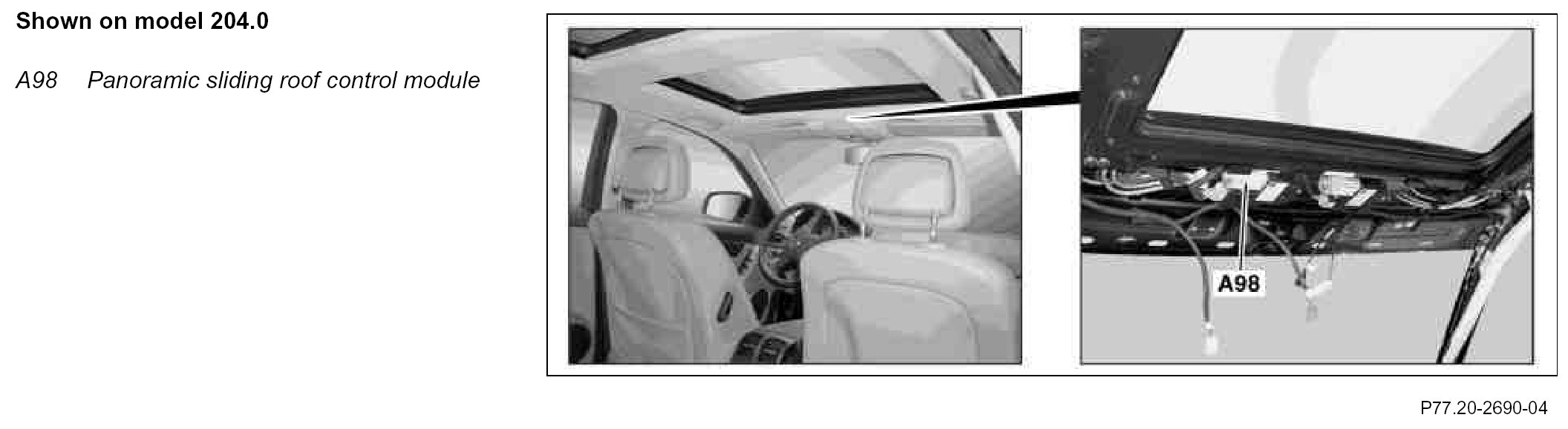 - Integrated panoramic sliding roof motor (A98m1)
