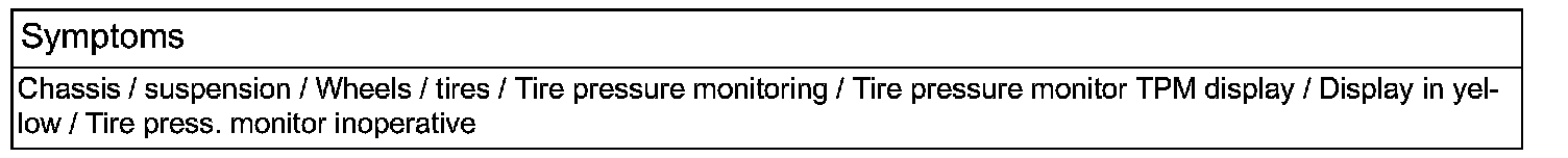 The vehicle must have been standing for 30 minutes before test drive. Sensor IDs are only sent at the time they wake up. If the status message in the instrument cluster "Tire pressure monitor inoperative" is present before this test drive, this is not a fault code and can only be reset with a 15 minute test drive.