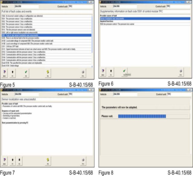 5. If there are no other fault codes present for TPMS the parameters in the TPMS control unit will be updated. refer to Figures 5 through 8 for reference.