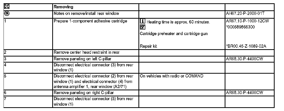 AR67.20-P-2000CW Remove/install Rear WindowComponent Identification:
