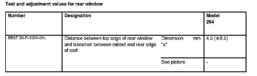 Test And Adjustment Values For Rear Window:
