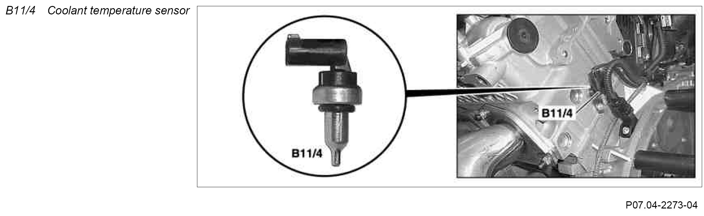 The coolant temperature sensor is located at the rear in the left cylinder head.