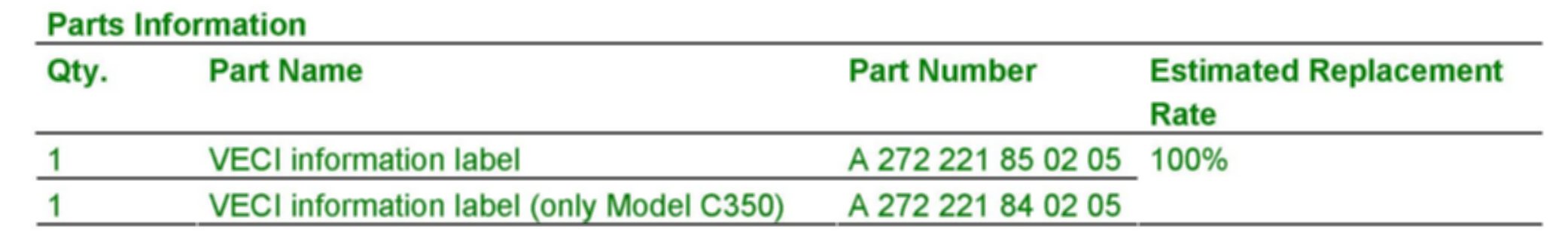 This Service Campaign has been initiated because Daimler AG (DAG) has determined that the Vehicle Emission Control Information (VECI) Label does not meet specifications. Dealers will replace the VECI Label at the next workshop visit.