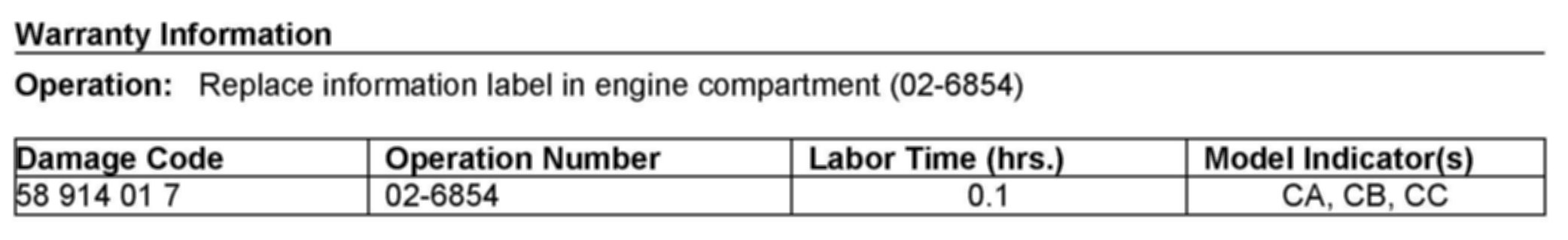 ^ The following allowable labor operation should be used when submitting a warranty claim for this repair:
