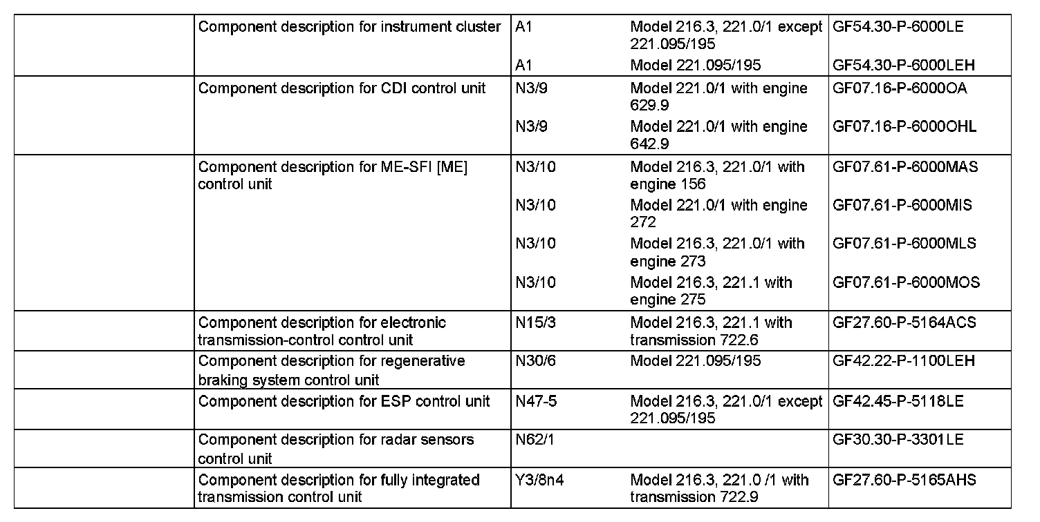 The request to decelerate the vehicle is transmitted from the radar sensors control unit via the chassis CAN to the CDI control unit (N3/9) (for diesel engines) or to the ME-SFI [ME] control unit (N3/10) (for gasoline engines) and to the ESP control unit (N47-5) or regenerative braking system control unit (N30/6) (for hybrid).