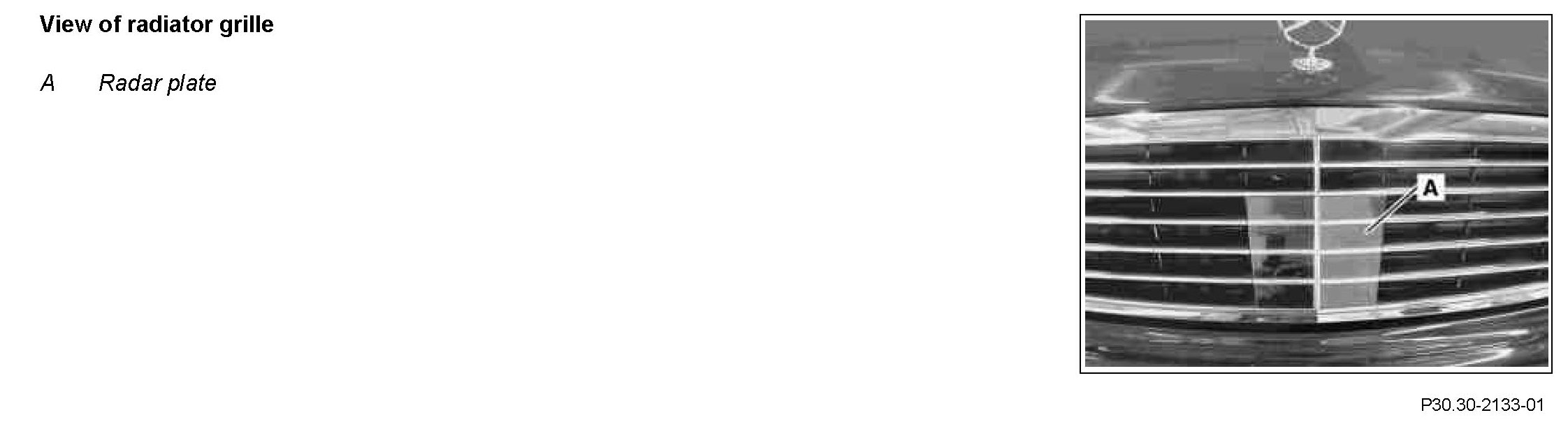 The radar plate is a radar-permeable cover in the radiator grille, which is required for the Distronic PLUS to function correctly.