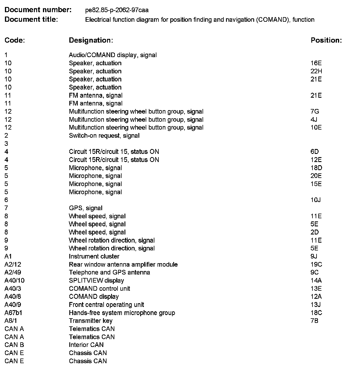 PE82.85-P-2062CAA Electrical Function Diagram For Position Finding and Navigation (COMAND), Function