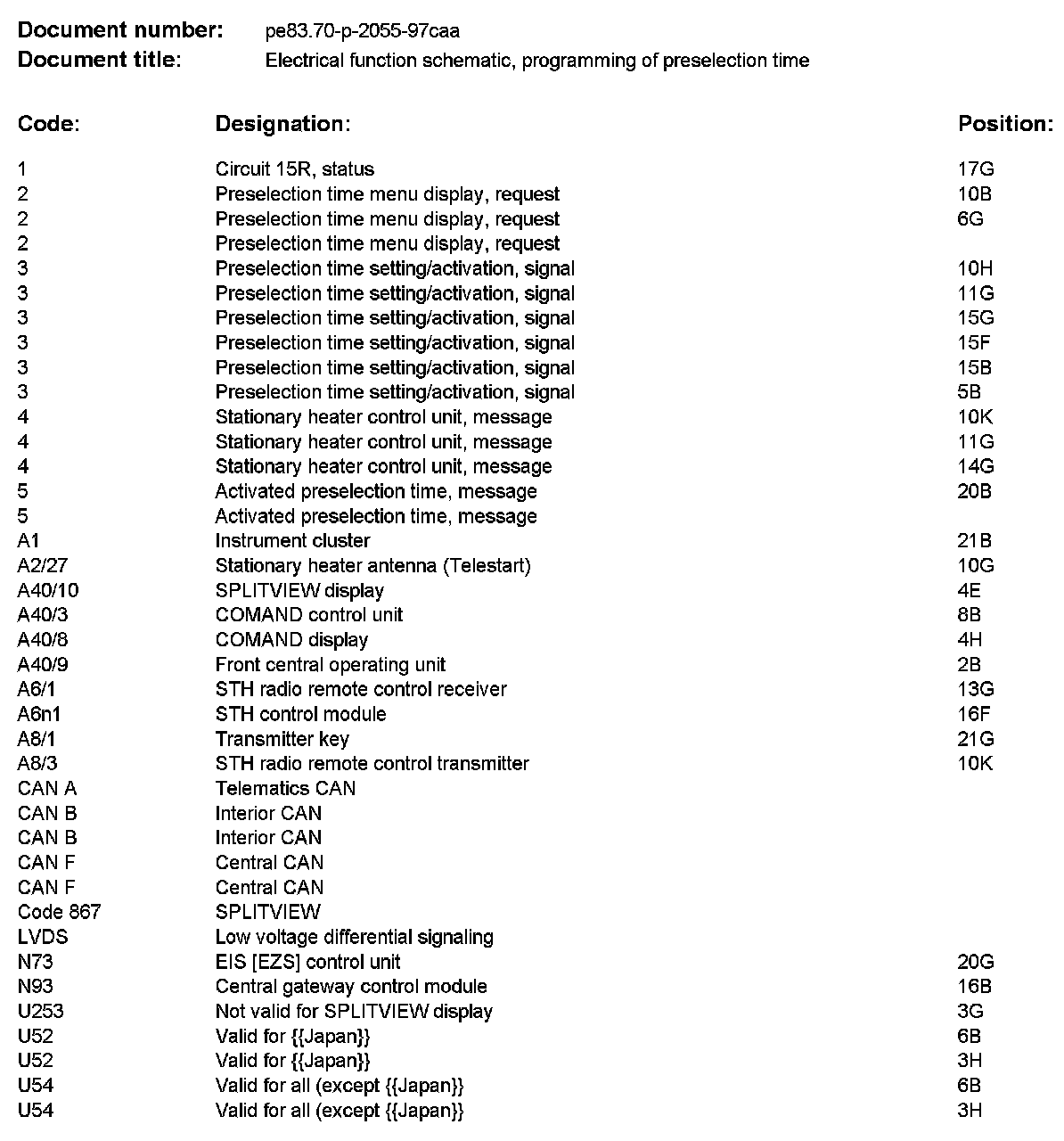 PE83.70-P-2055CAA Electrical Function Schematic, Programming of Preselection Time