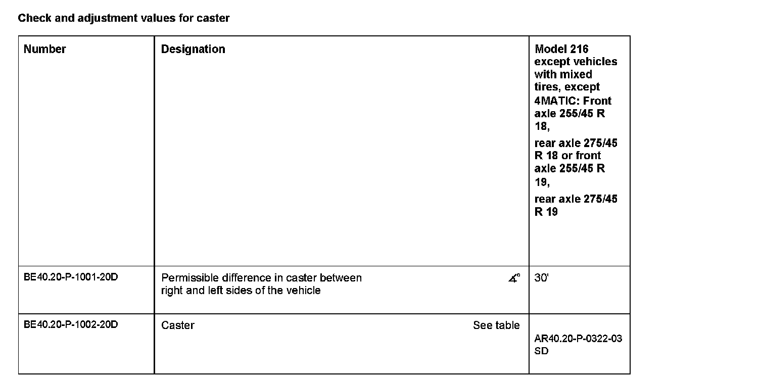 Check and adjustment values for caster: