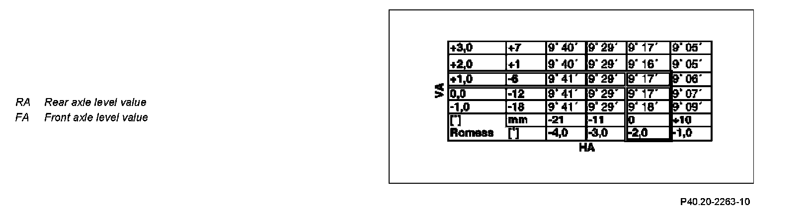 Rear axle level value (RA): - 2,0 degrees