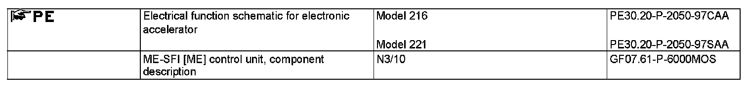 The electronic accelerator function (EFP) is integrated in the ME-SFI control unit (N3/10), and controls the opening angle of the throttle valve according to driver requests and operating conditions.