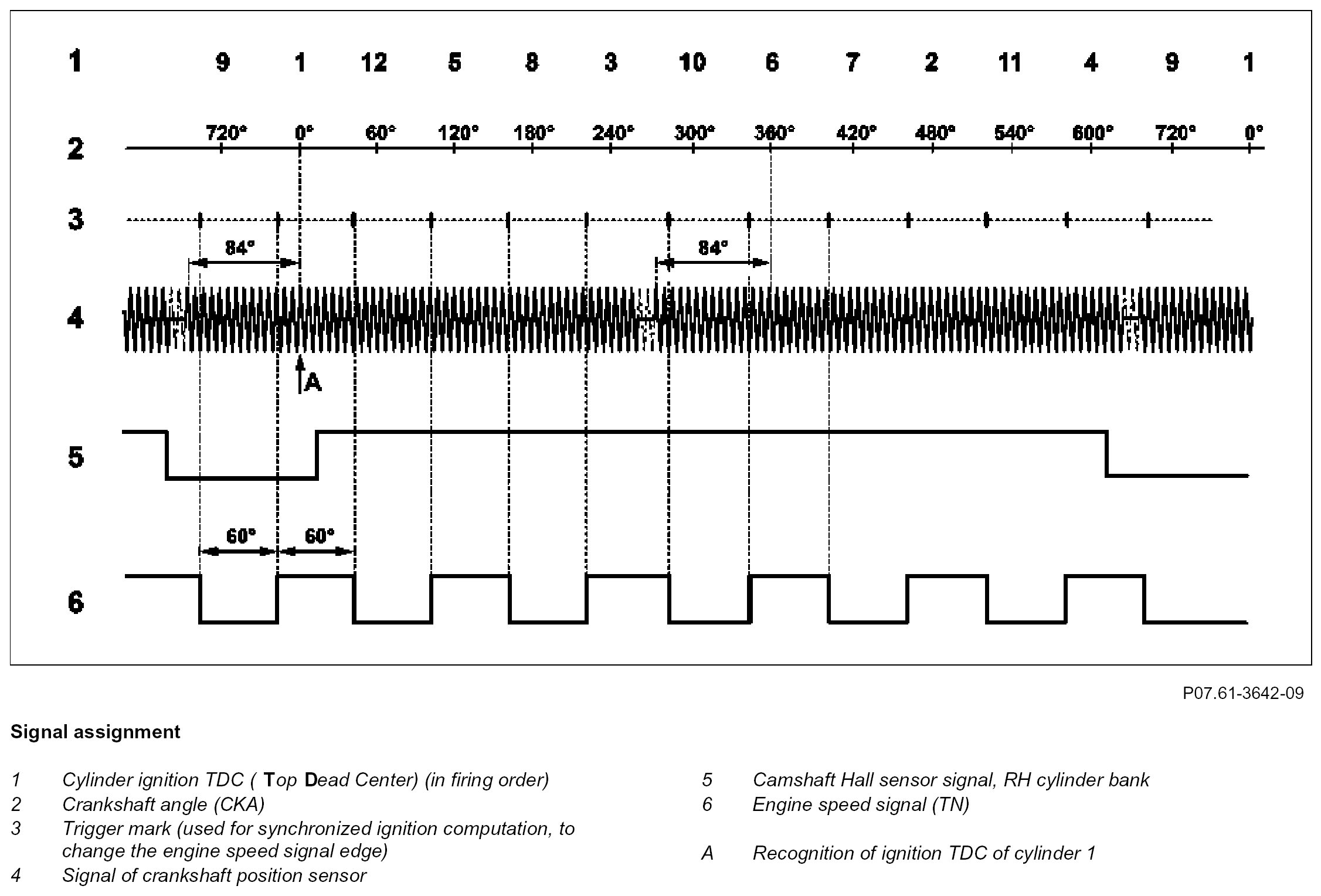 If the voltage signal from the crankshaft position sensor is missing, the voltage signal from the crankshaft Hall sensor of the RH cylinder bank (B6/3) is used instead (in limp-home mode)