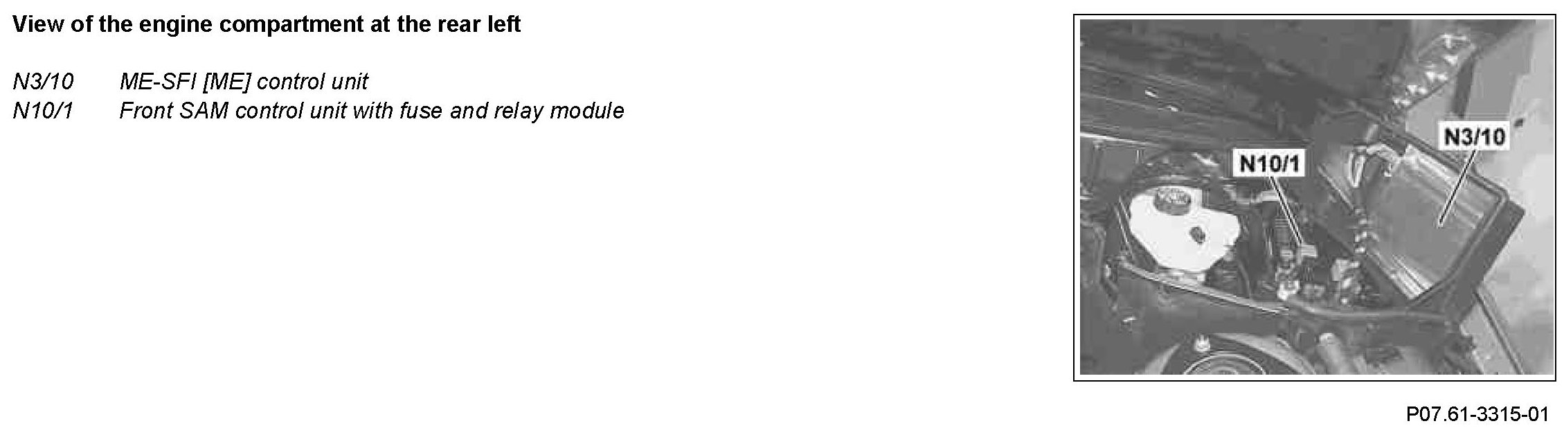 Ensure before unplugging the plug on the ME-SFI [ME] control unit that the ignition is switched off and computer run-on has ended. This is to prevent damage to the ME-SFI control unit and save errors i the control units linked to the CAN.
