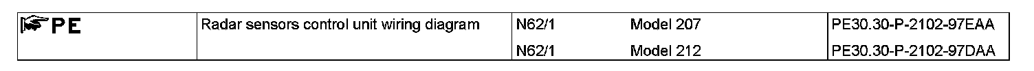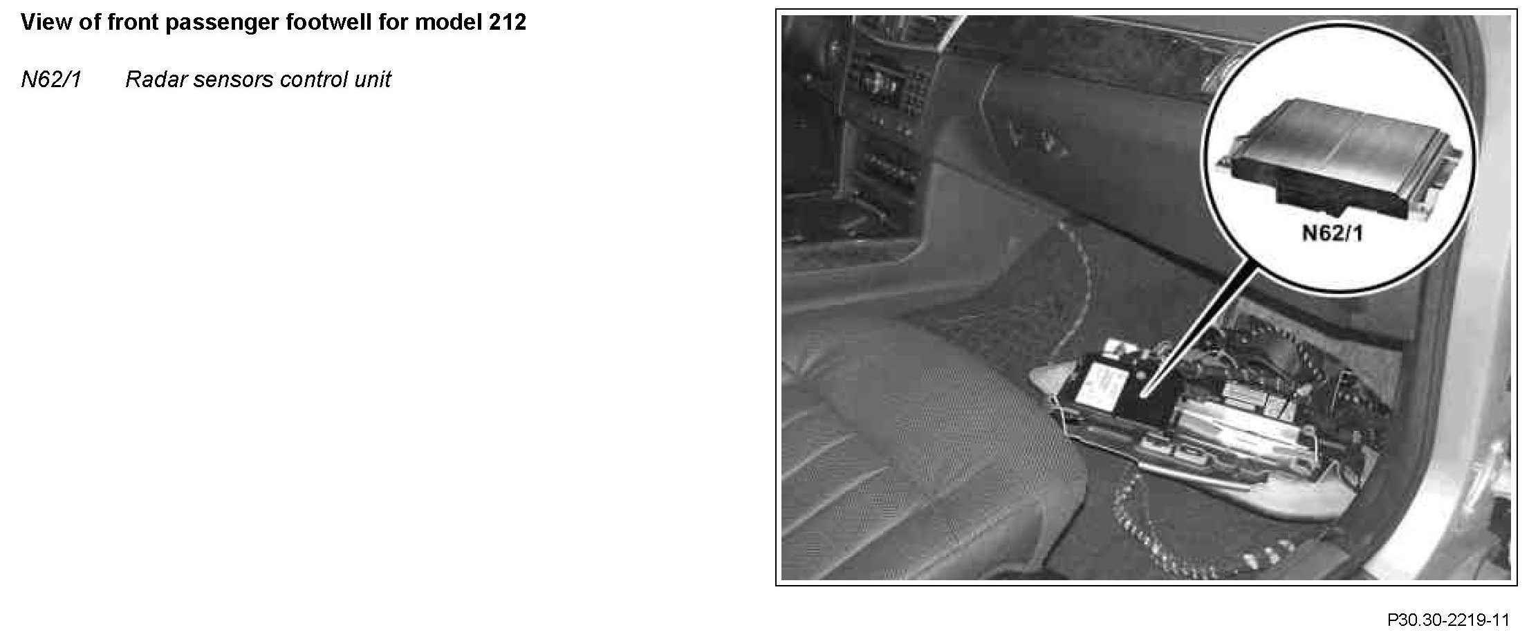 The radar sensors control unit is the unit that evaluates the short range radar and the long range radar. To do this the left and right inside radar sensor, front bumper (A86/1b2, A86/1b3) (short range sensors) are interconnected via the sensor CAN (CAN S) and the long range radar via the dynamics CAN (CAN H) with the radar sensors control unit.
