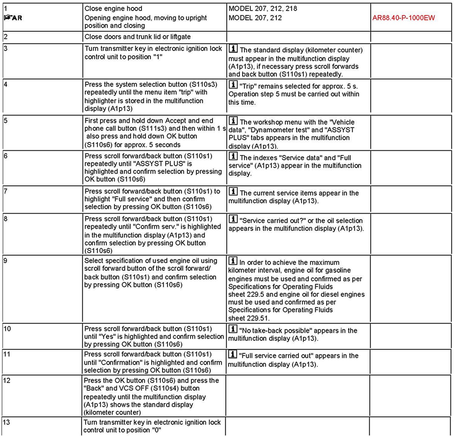 AP00.20-P-0042EW Reset Service Indicator [Serv. A - H] 12 Button S/Wheel