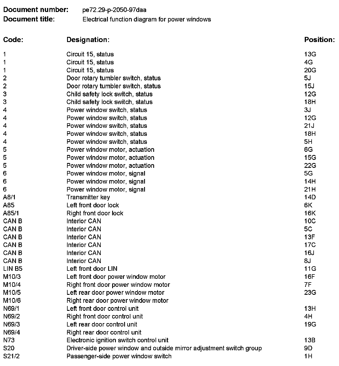 Function Diagram For Power Windows pe72.29-p-2050daa