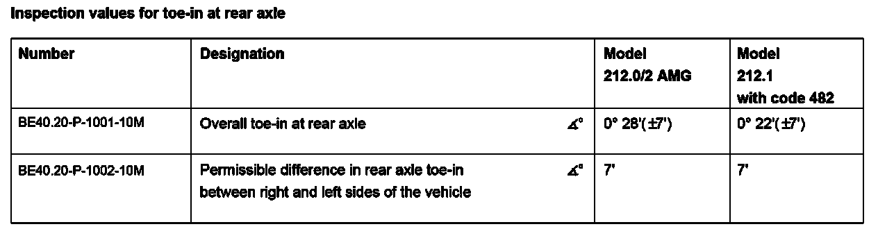 BE40.20-P-1001-10M Inspection Values For Toe-In at Rear Axle