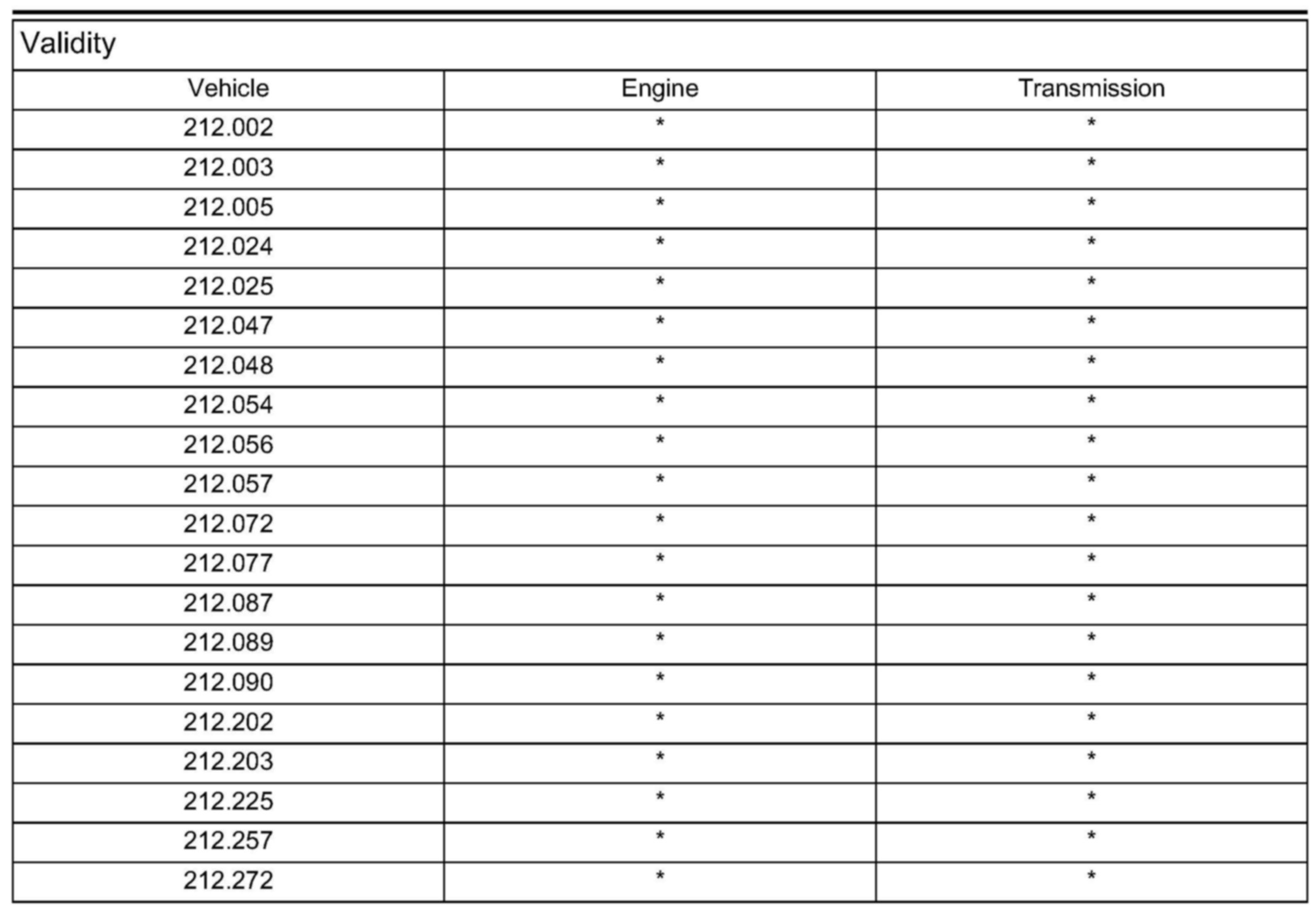 Validity Model series 212 up to VIN A092538 (production date 10.09.2009) with SA code 427