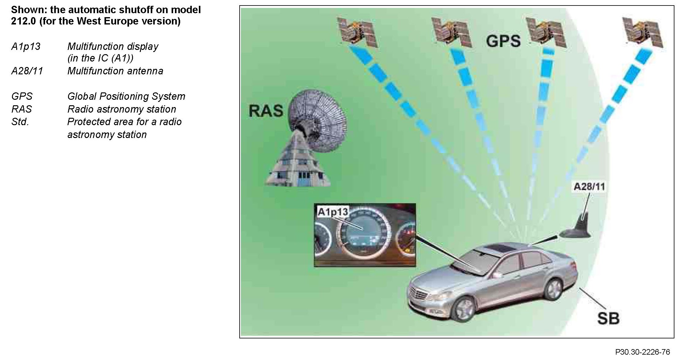 If the vehicle is in a protected area, this is detected by the GPS/ navigation system (Global Positioning System).